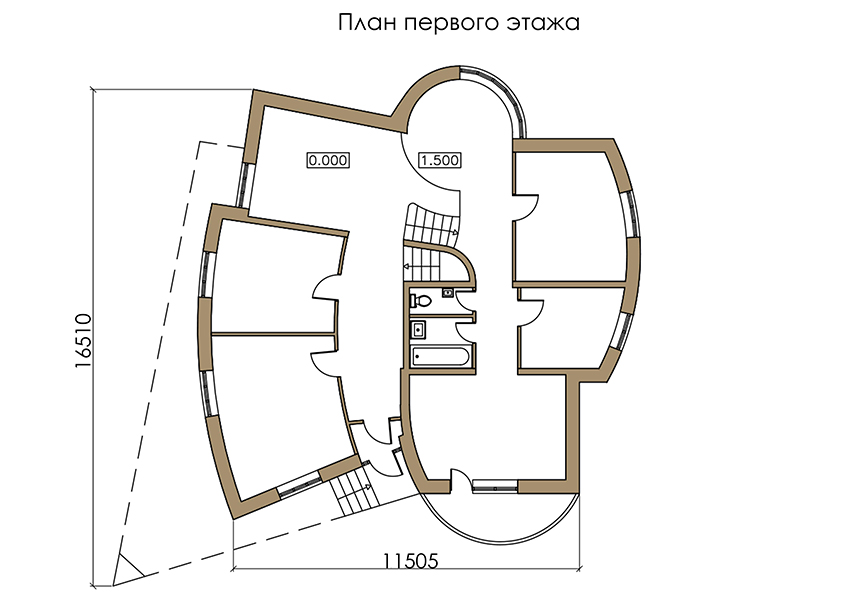 - Габаритные размеры 16510х11505 (по 1 этажу);