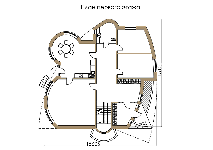 Габаритные размеры 15605х15100 (по 1 этажу);