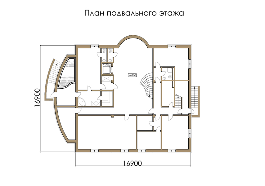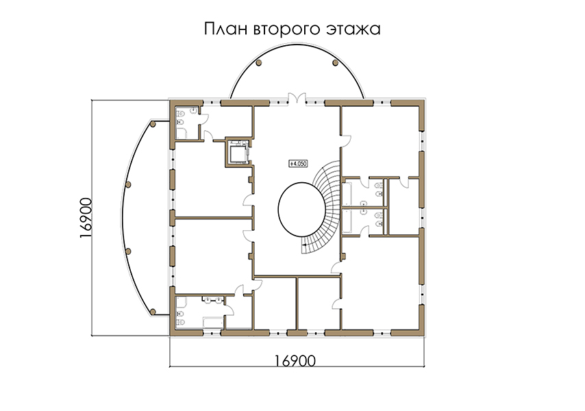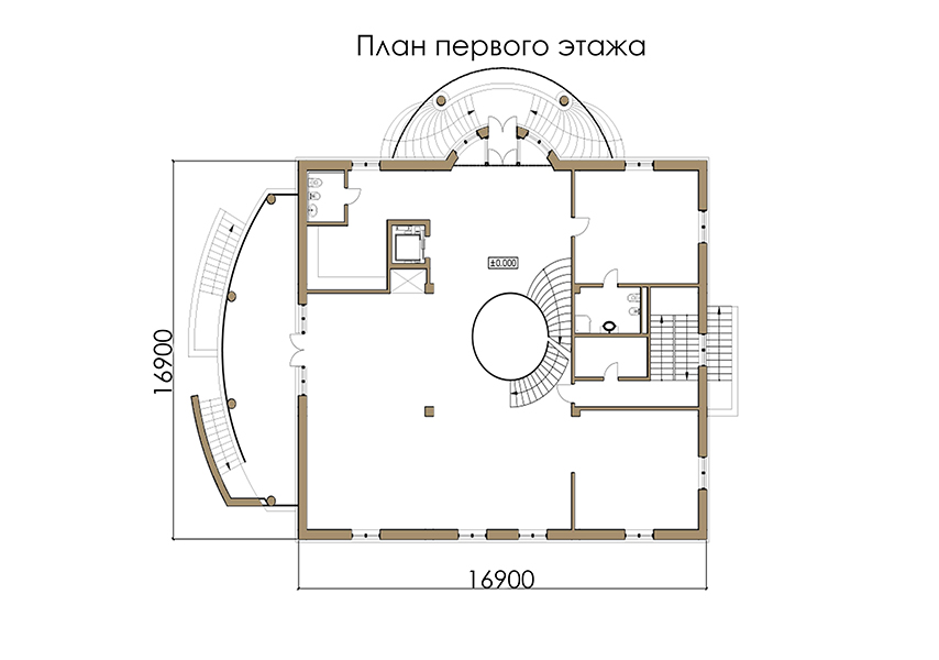 * Габаритные размеры 16900х16900 (по 1 этажу);