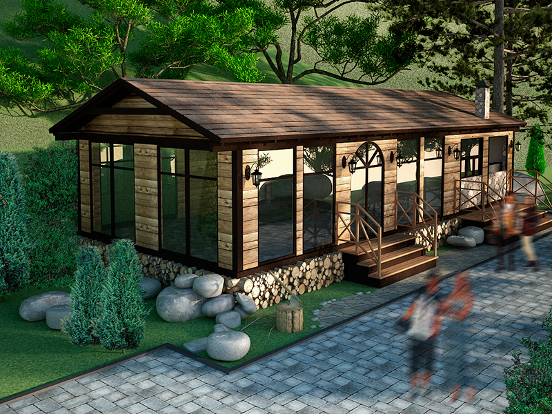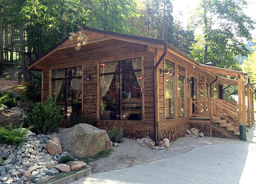 Объект максимально интегрирован в природный ландшафт, так, что создаётся ощущение, что эта избушка построена довольно давно и, возможно, когда-то была хижиной лесника. Но, тем временем, это современное здание, выполняющее функцию кафе.